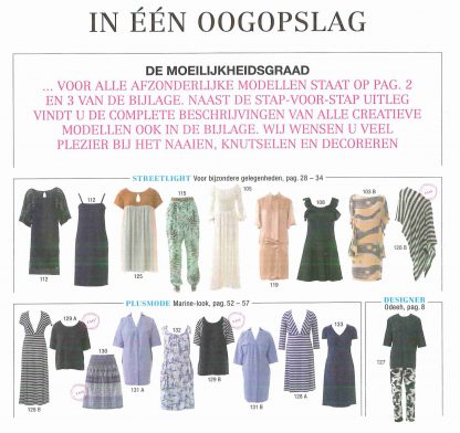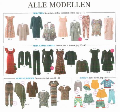 In deze editie: 51 modellen. Afrika look, mode met fantastische dessins in aardtinten. indrukwekkende mode in het rood en zwart, babykleertjes in powerkleuren, blauwe of gestreepte jurken in de maat 44-52. stap voor stap een blouse met volants en nog veel meer.
