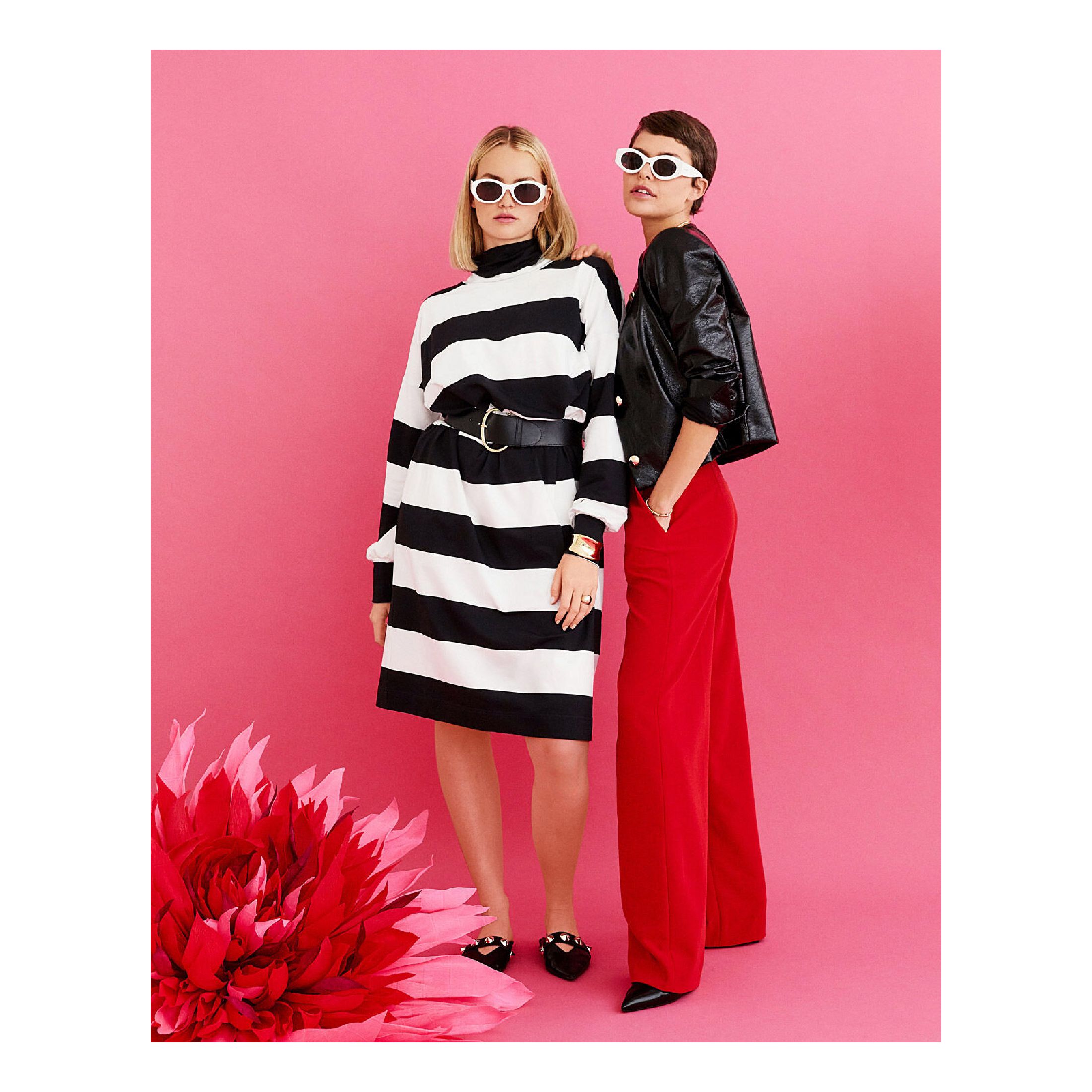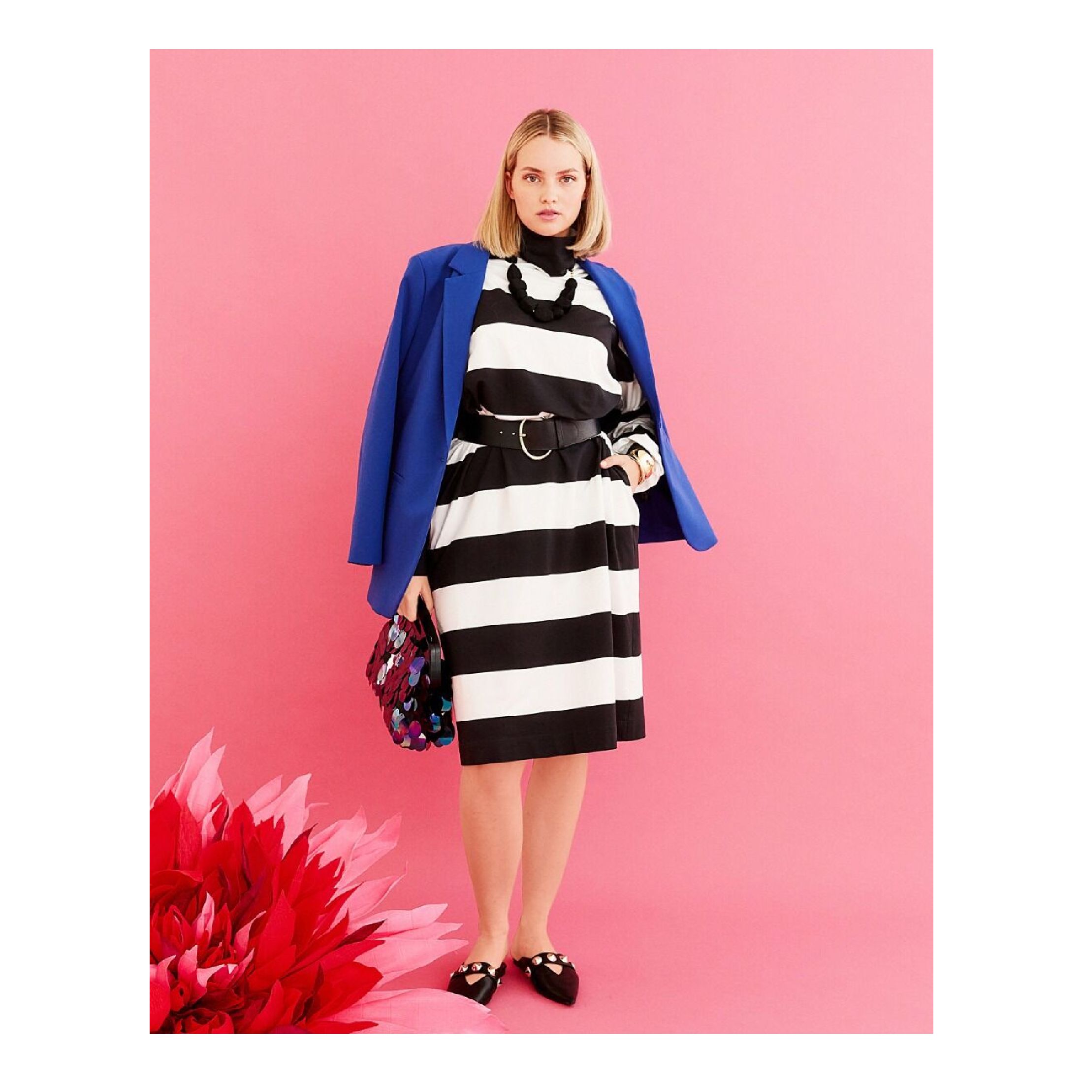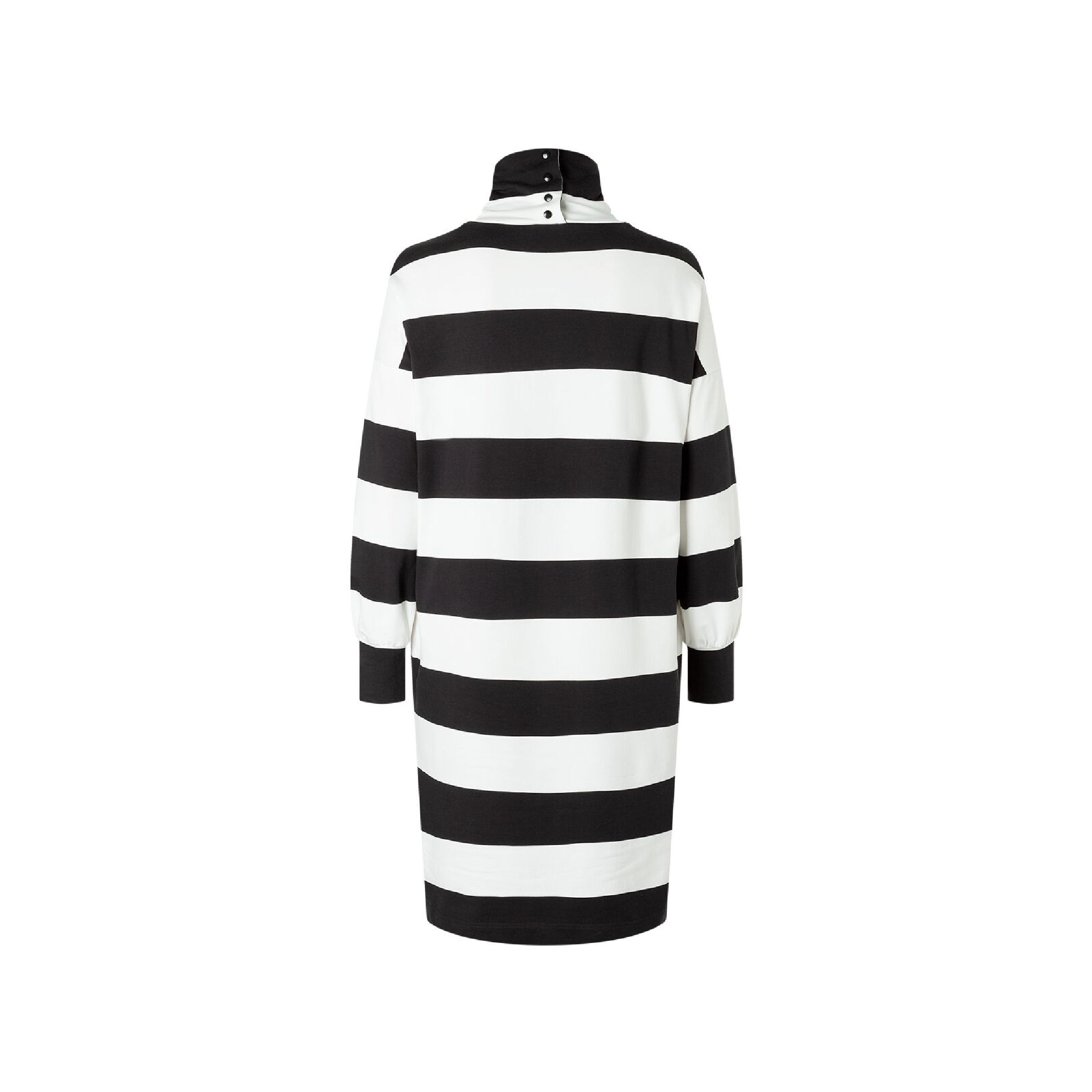 Heerlijk brede strepen à la sixties + een nonchalant patroon: de jurk met een col (met aan de achterkant een knoopsluiting) en mouwboorden heeft twee kanten, want hij is lekker ongecompliceerd, maar heeft toch vrouwelijke details.