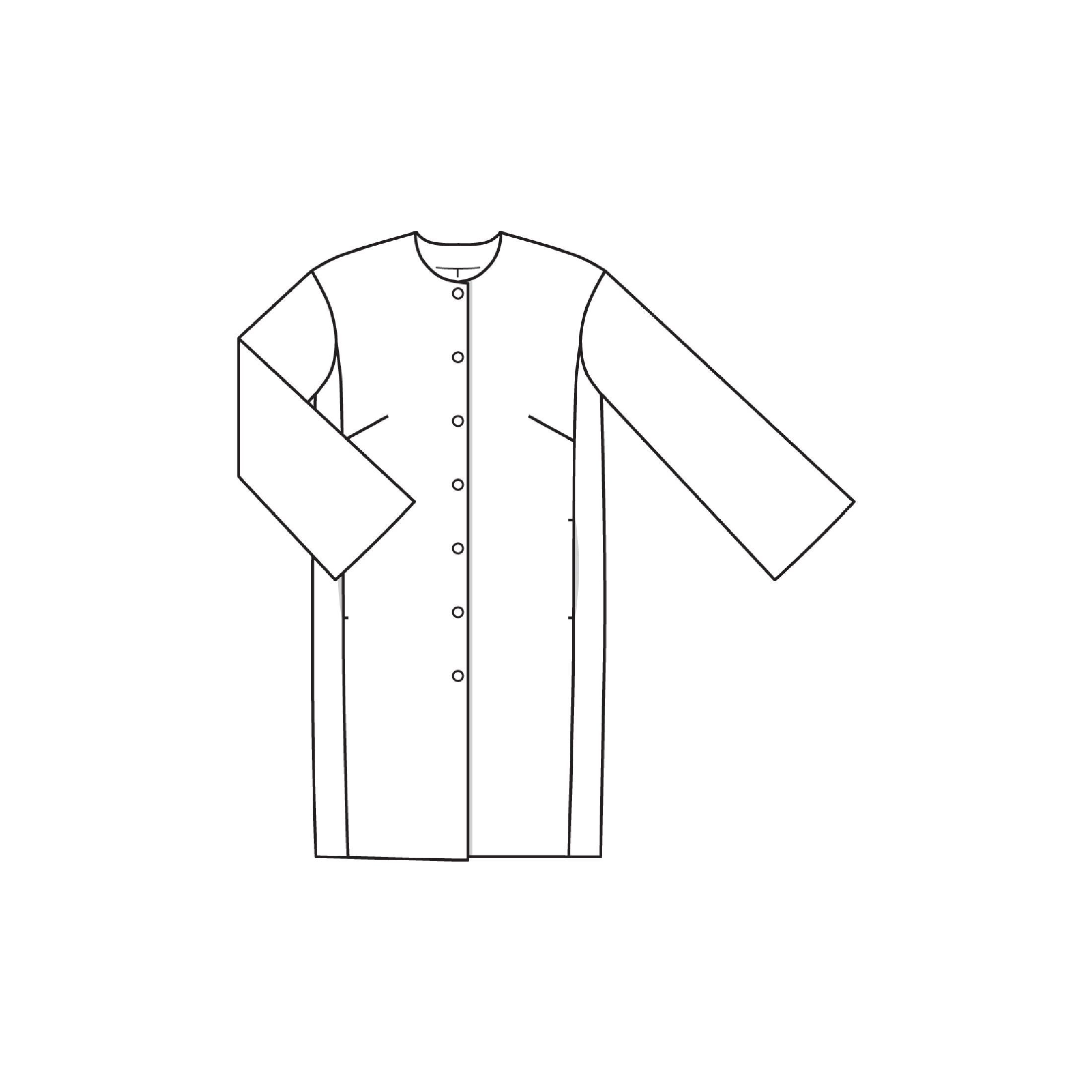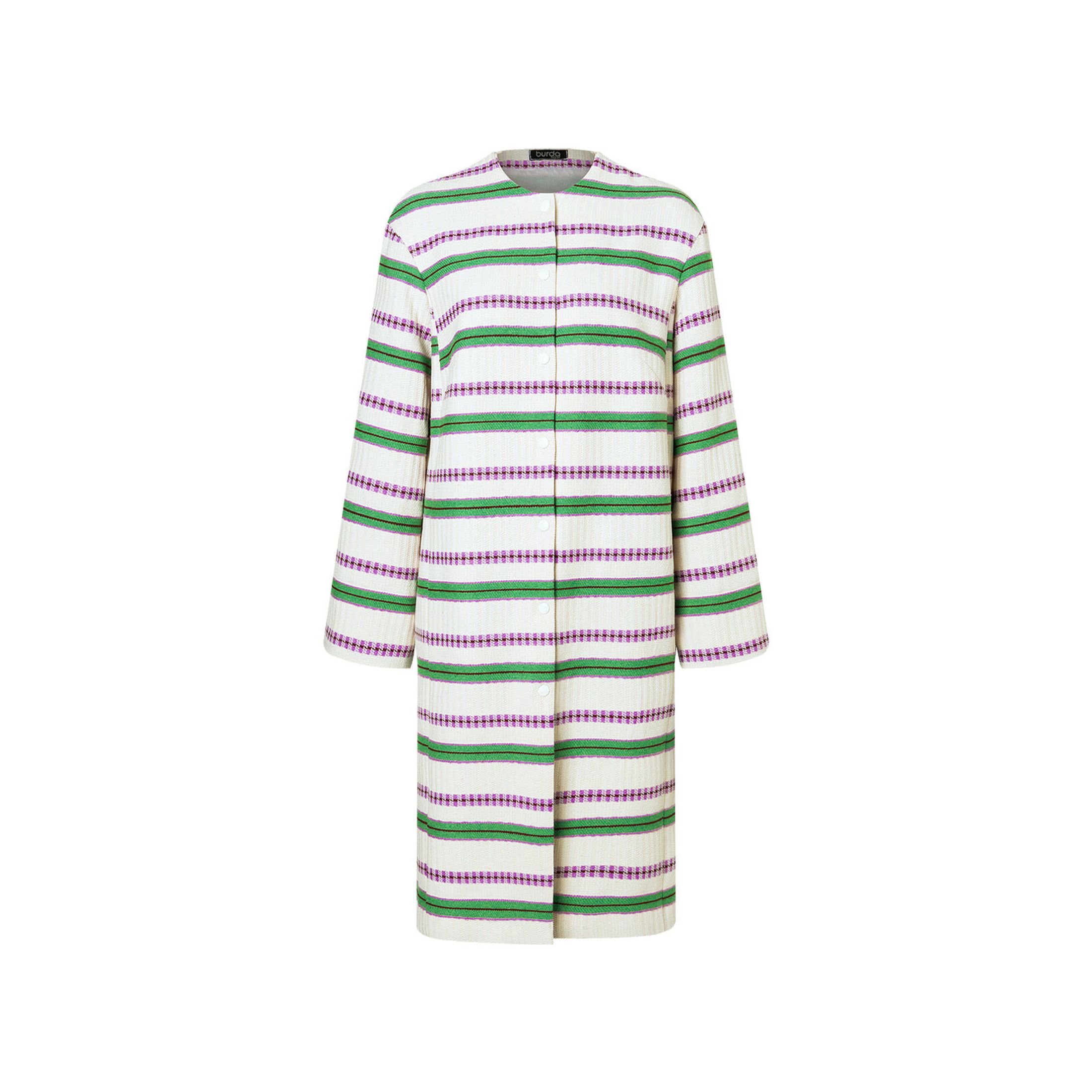 Nonchalant op een spijkerbroek of bij een mooie cocktailjurk: de eenvoudige mantel met laag aangezette mouwen en zakken in de naad past bij vrijwel elke look. De mantel kan – indien gewenst – eenvoudig worden ingekort of verlengd.