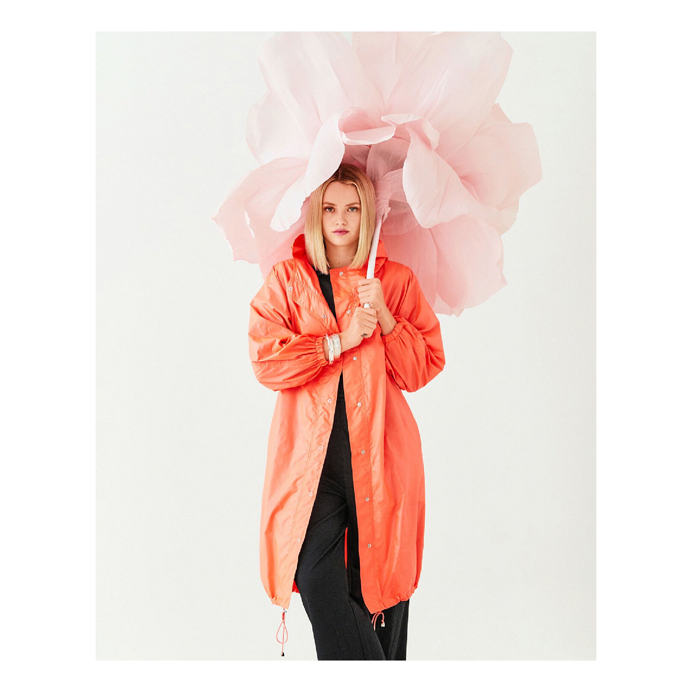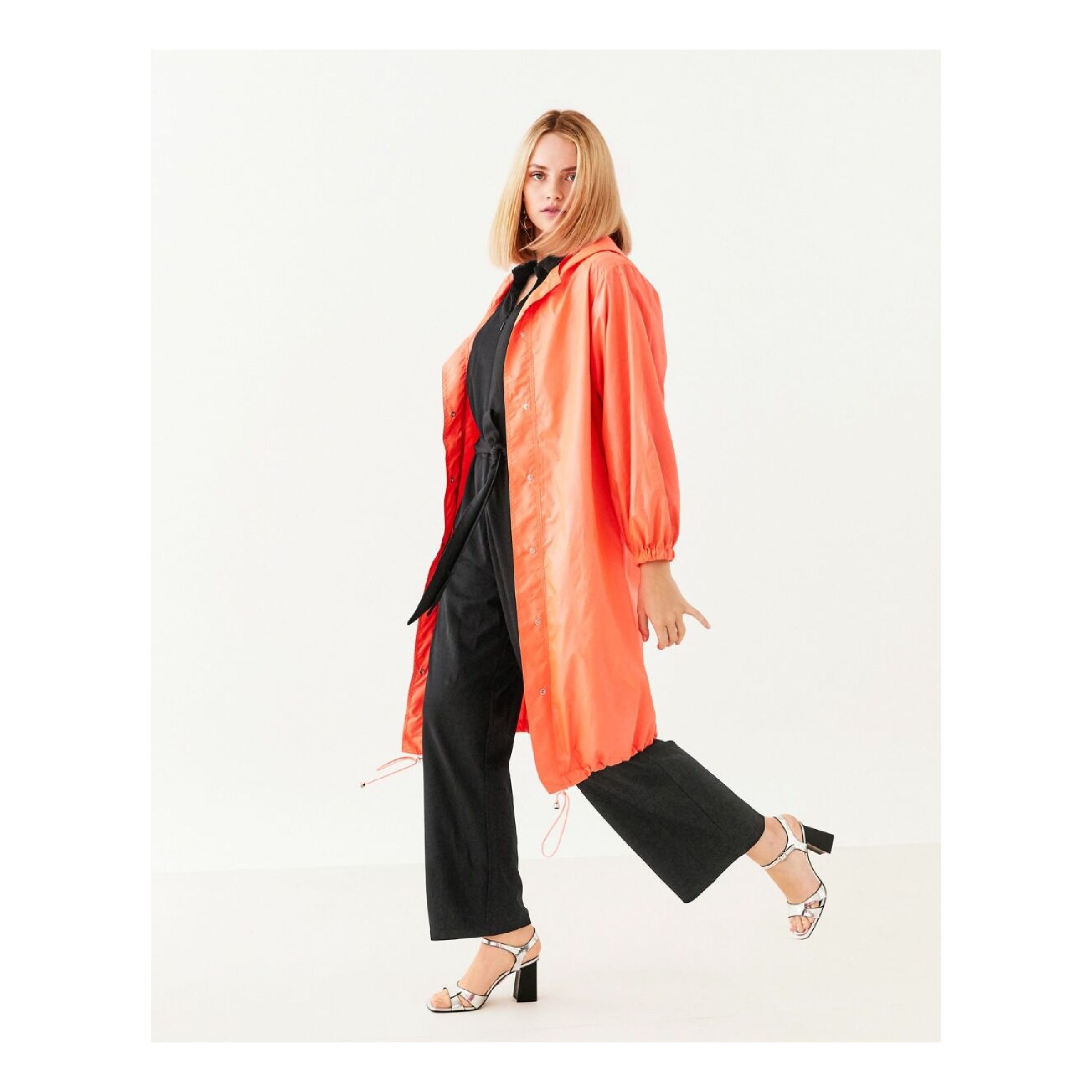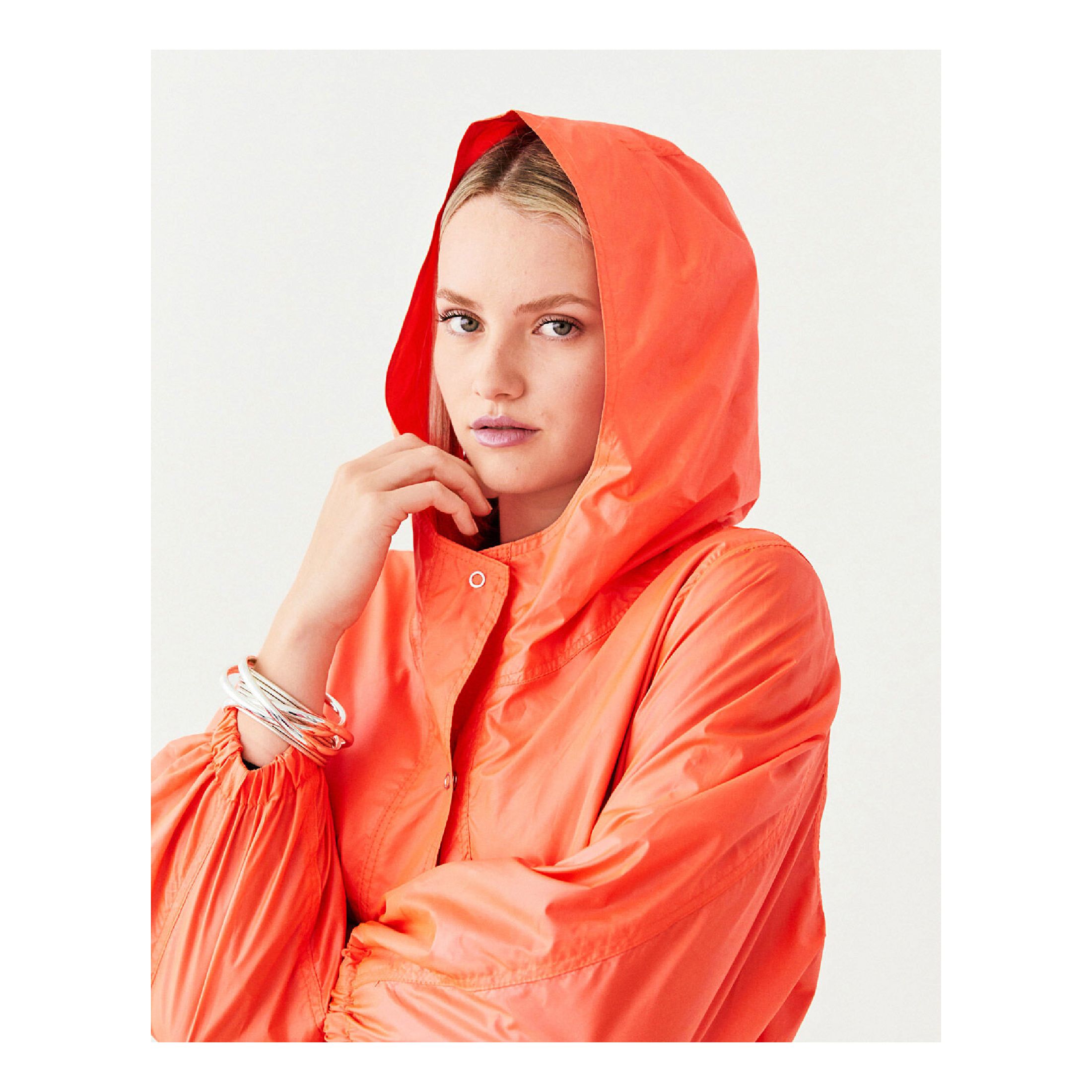 In deze gekleurde parka van nylon kun je elke regenachtige dag vrolijk doorkomen. Mag niet ontbreken: een reusachtige capuchon, tunnels met elastiek bij de mouwzoom (houdt de wind lekker tegen) en de tunnel met koord bij de zoom.