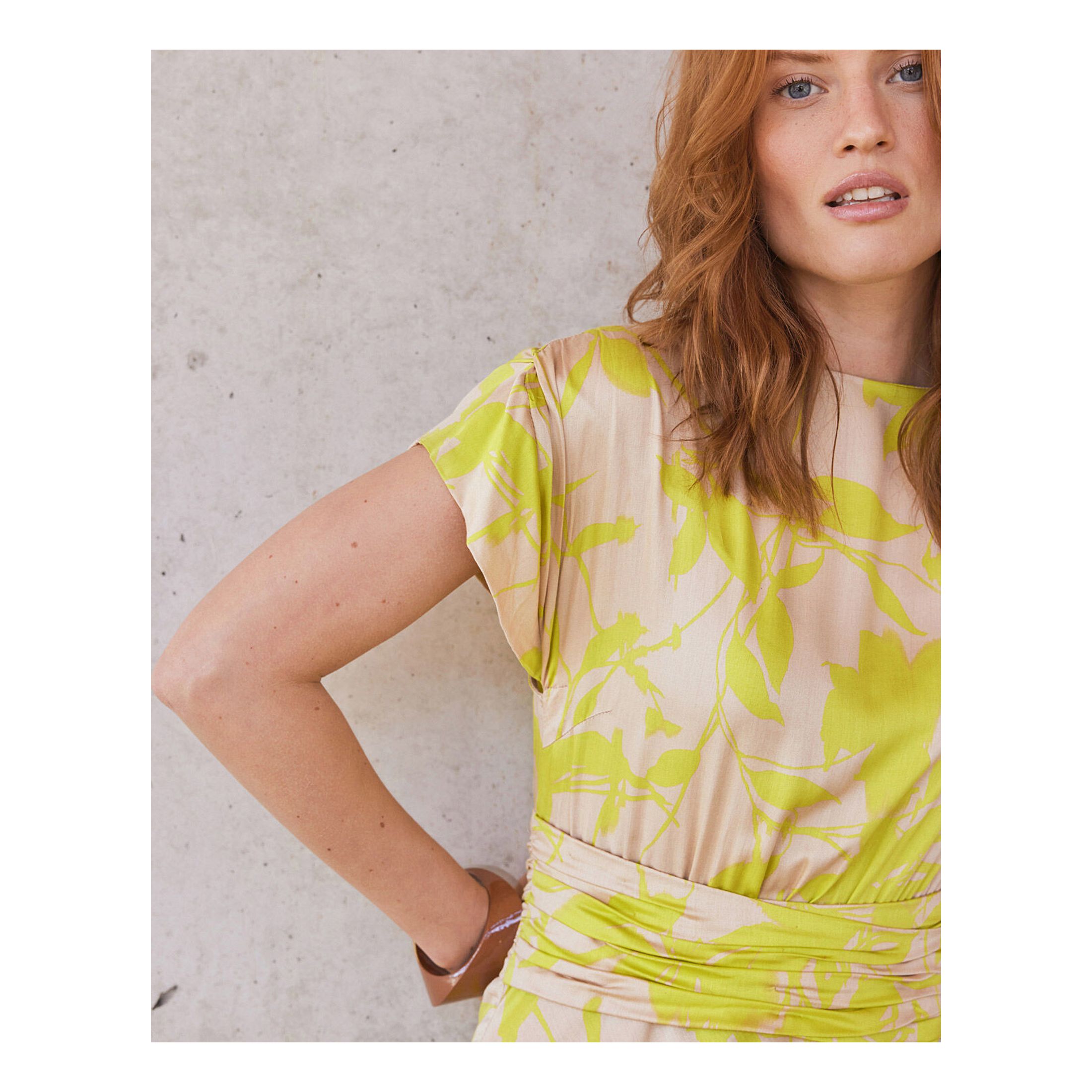 Deze zwierige jurk heeft biezen die eruitzien als een riem in de taille, waardoor het figuur mooi getailleerd wordt. De rok is schuin geknipt voor een bijzonder zachte drapering. Je vindt de tuniekjurk op de volgende pagina.