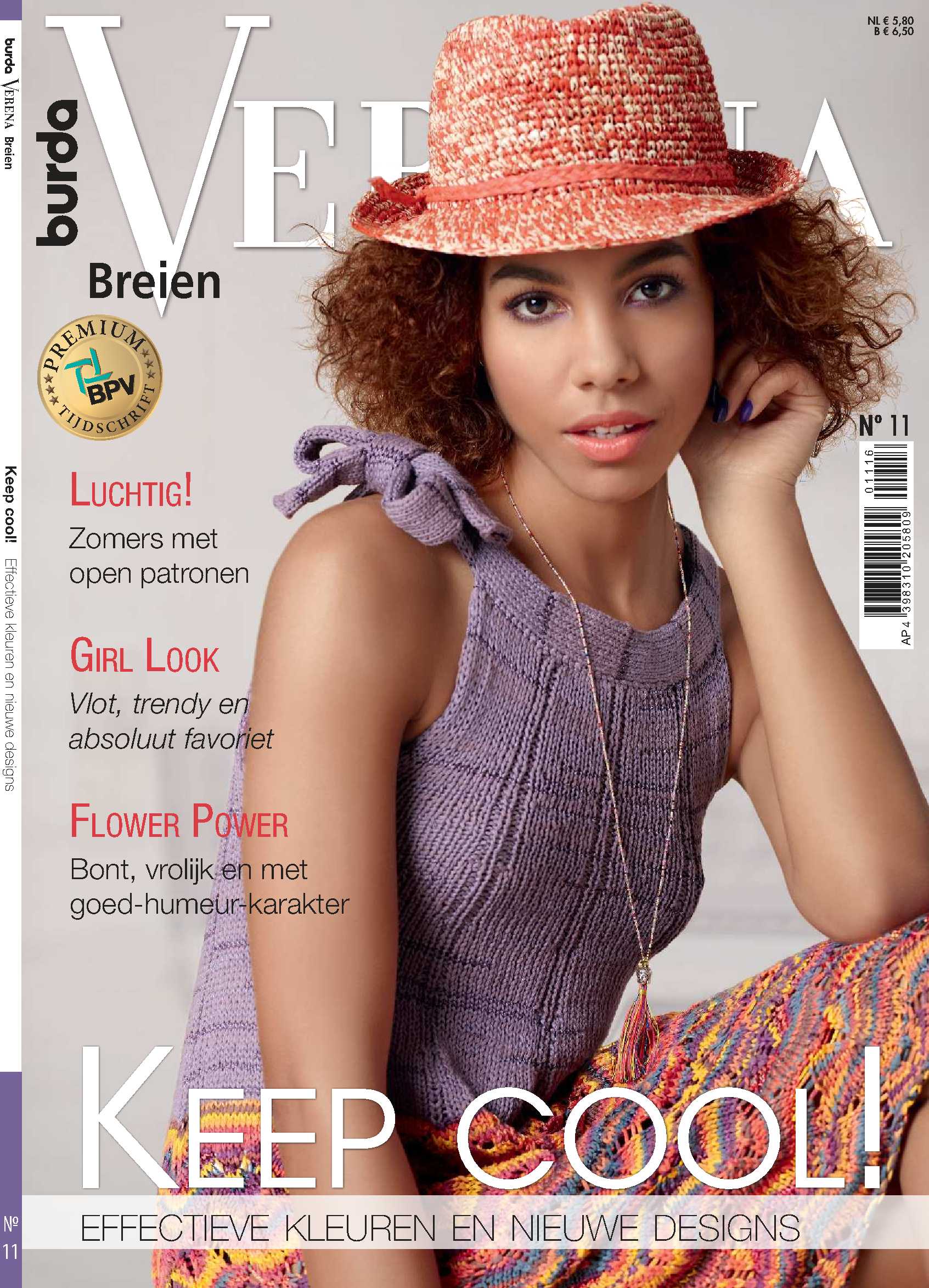 In Verena Breien nr. 11 vindt u breimode voor de zomer. In dit nummer kunt u een keuze maken uit verschillende looks: van nonchalant-elegante stijl voor aan het strand en de poolbar, een uitdagende trend met opengewerkte netstructuren tot een moderne romantisch collectie met onder andere een maxi jurk. Alle modellen zijn voorzien van een gedetailleerde uitleg inclusief schema’s met patronenoverzicht, basispatronen, opzetten en steken.